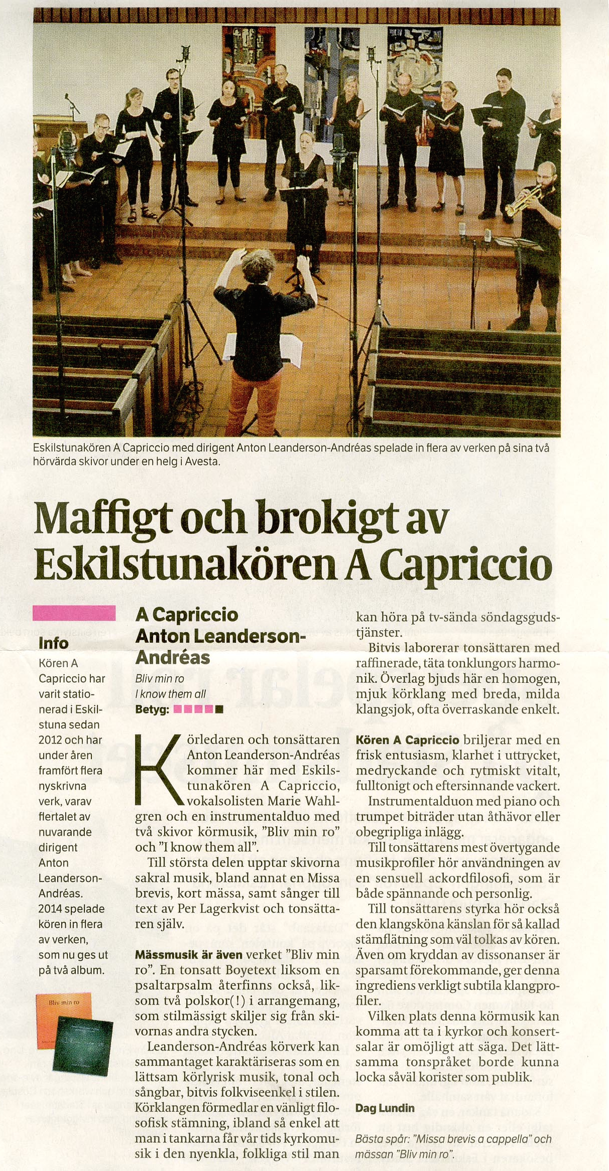Skivrecension Eskilstuna-Kuriren (betyg: 4 av 5)